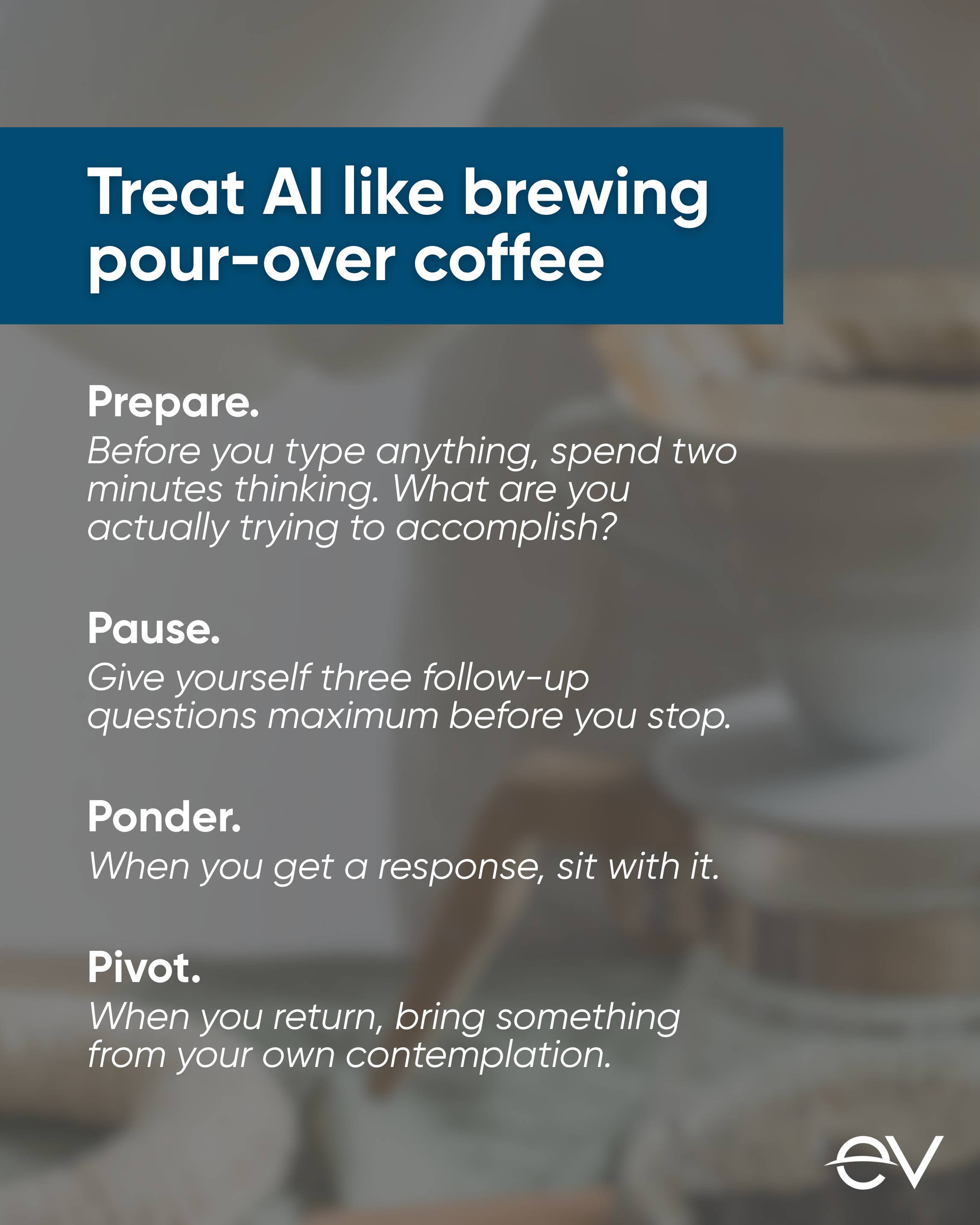 The Pour-Over Practice: Intentional input, deliberate pauses, contemplation, adjusted questions, deeply satisfying results. This is what AI can be, when you approach it differently. You protect the white space where insight lives.